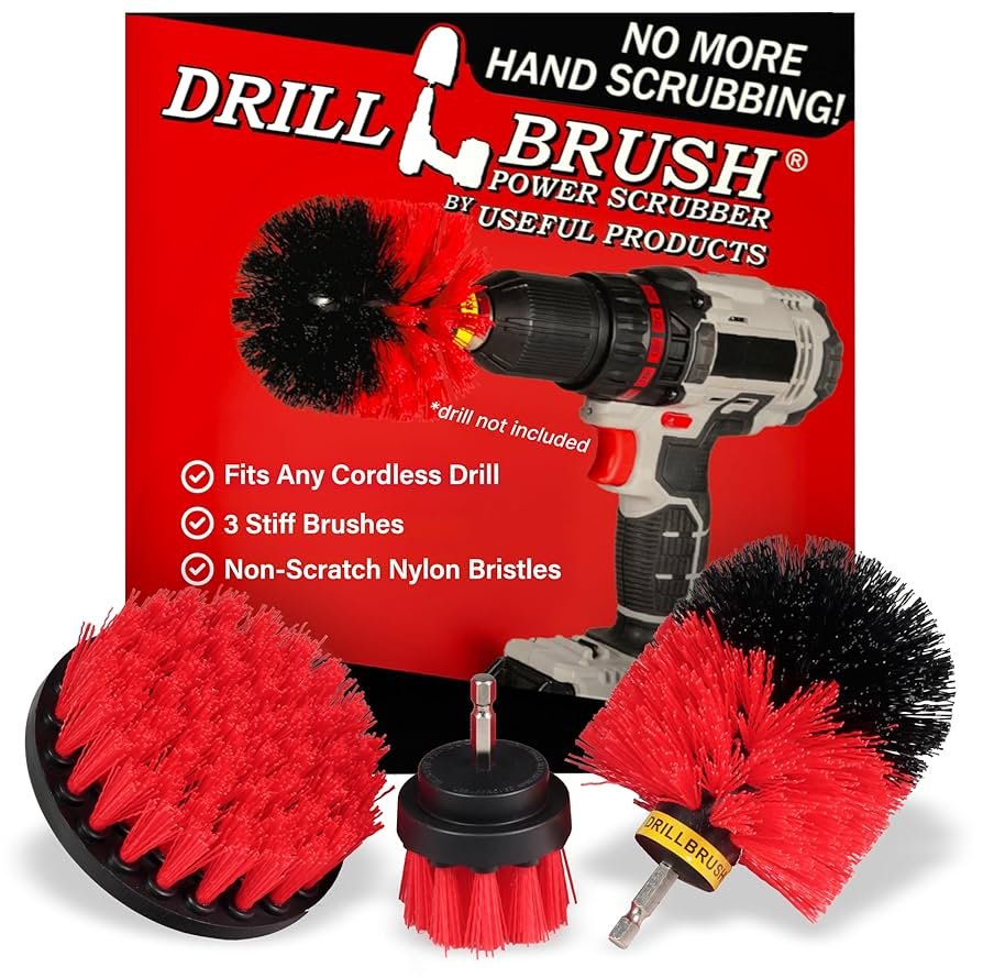 Using a scrub brush attached to a drill can make cleaning easier. This tool spins rapidly, removing dirt and grime effectively. It saves time and effort, leaving surfaces spotless.
